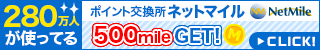 バナー経由でネットマイルに登録した場合のみ、500mileが報酬として支払われます。(会員登録月翌月月初に付与されます)